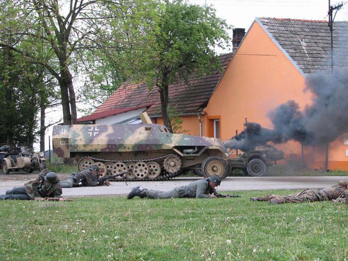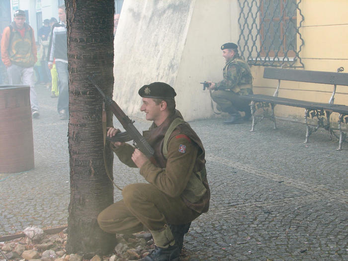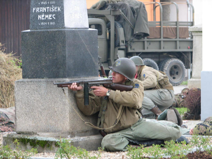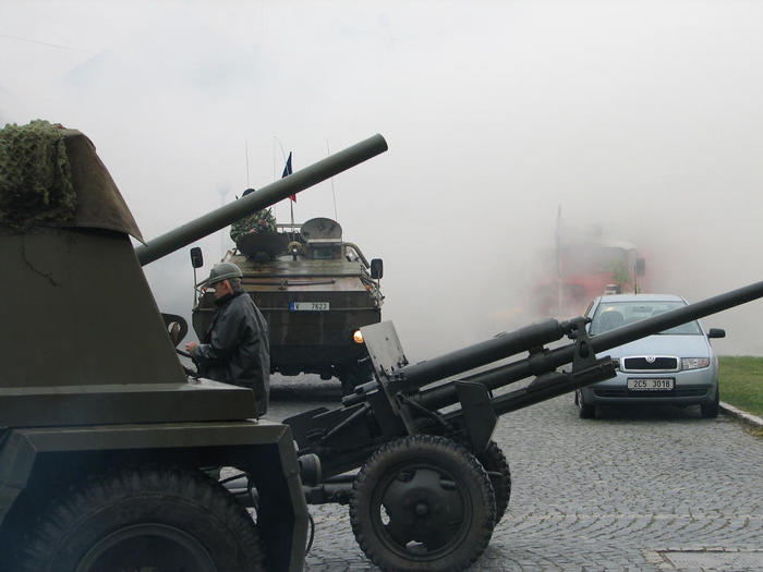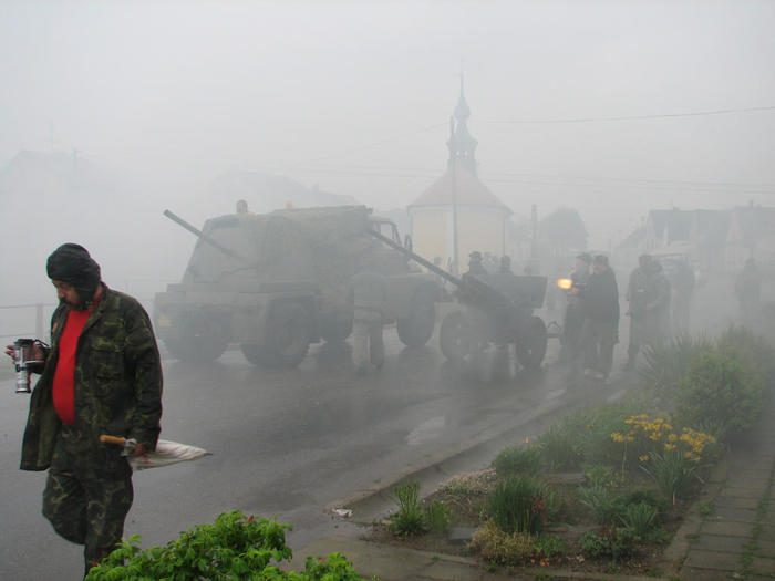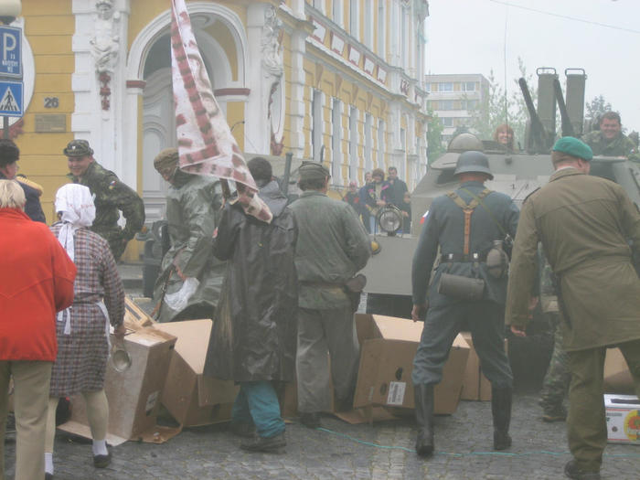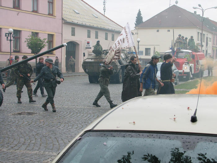 Do Žíšova sjely kluby vojenské historie z různých koutů naší vlasti, aby divákům předvedli, jak to mohlo v květnu 1945 na njěkterých místech republiky vypadat.