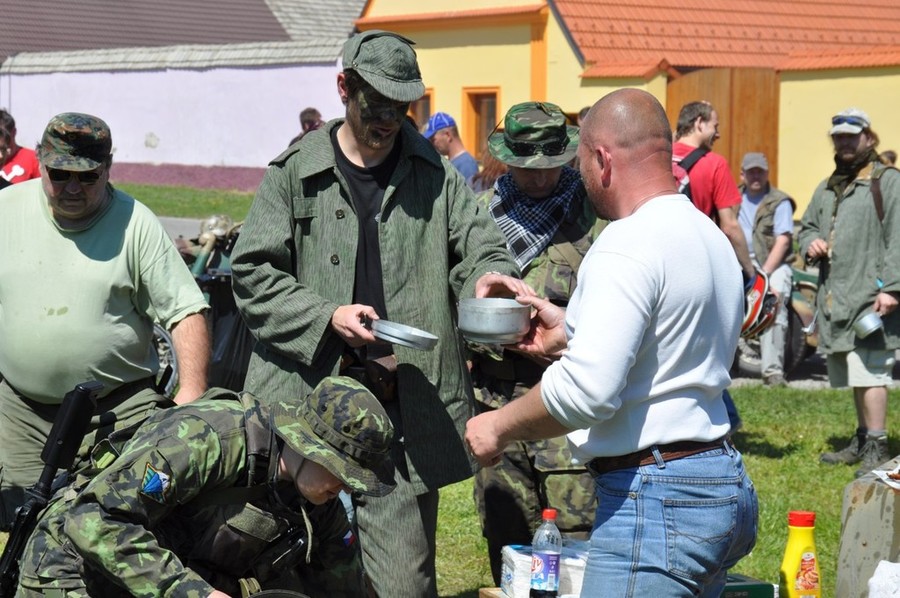 Po boji guláš z polní kuchyně pro všechny bojující.