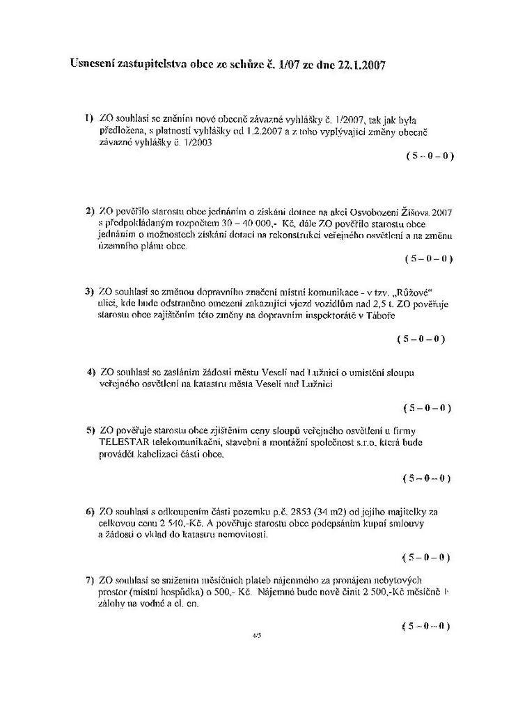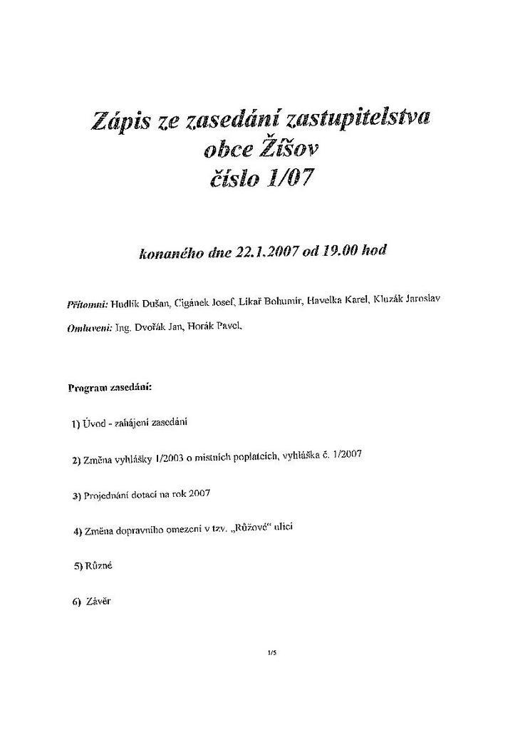 Zápis ze schůze 1/07 ze dne 22.1.2007