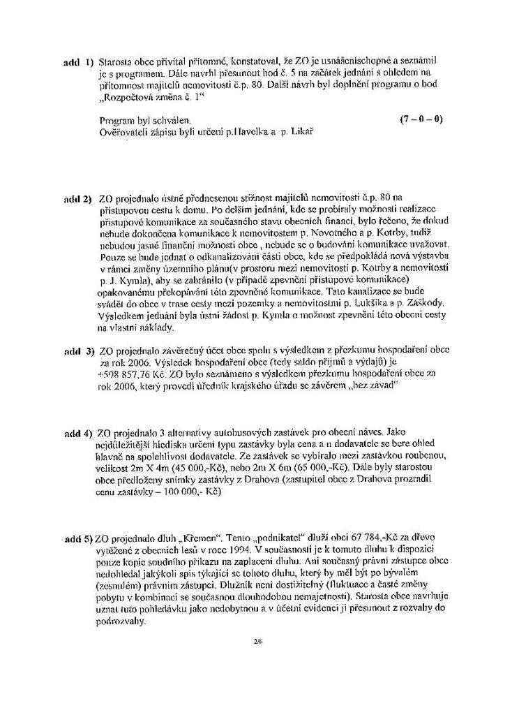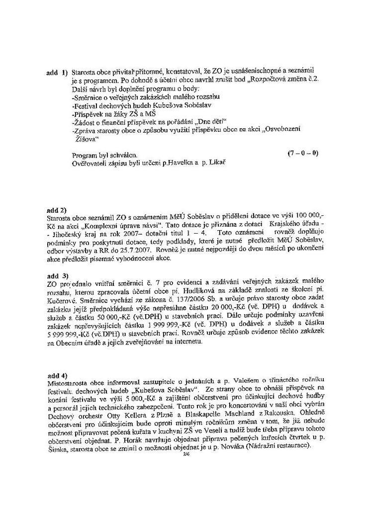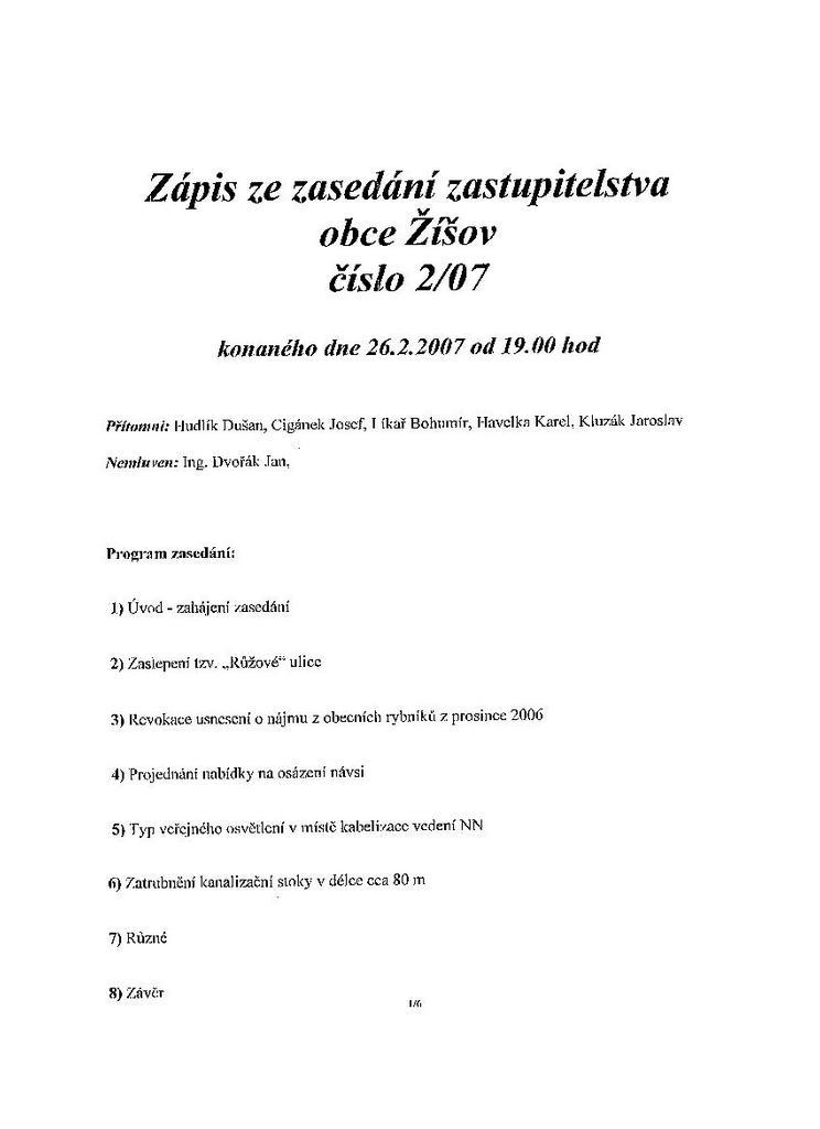 Zápis ze schůze 2/07 ze dne 26.2.2007