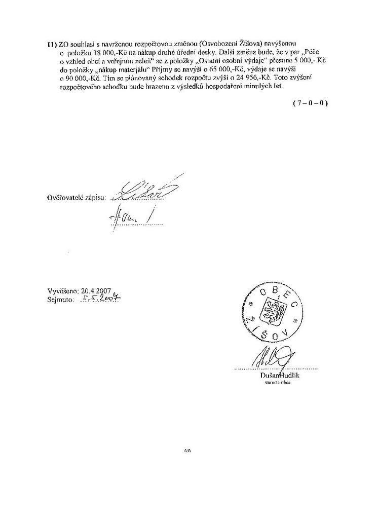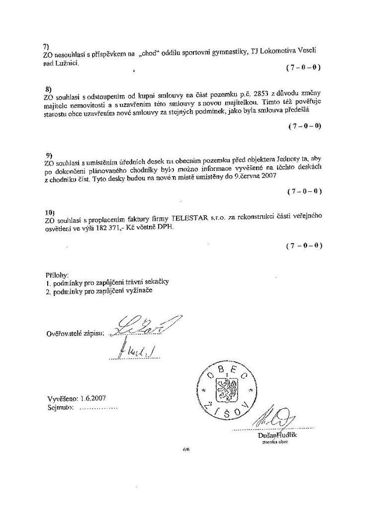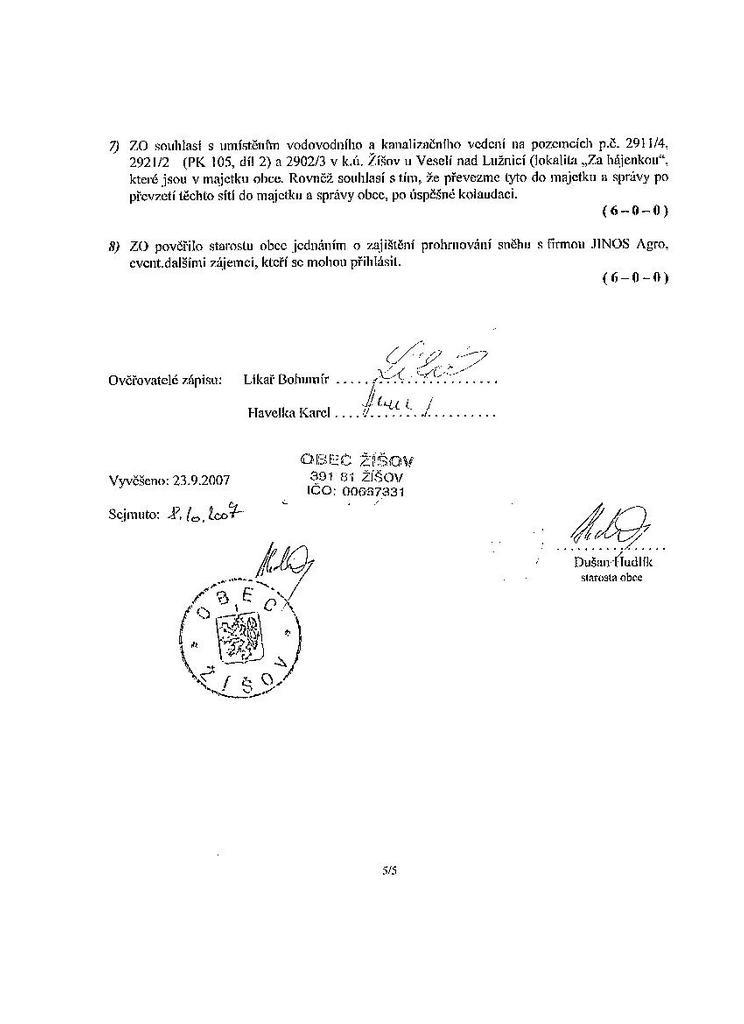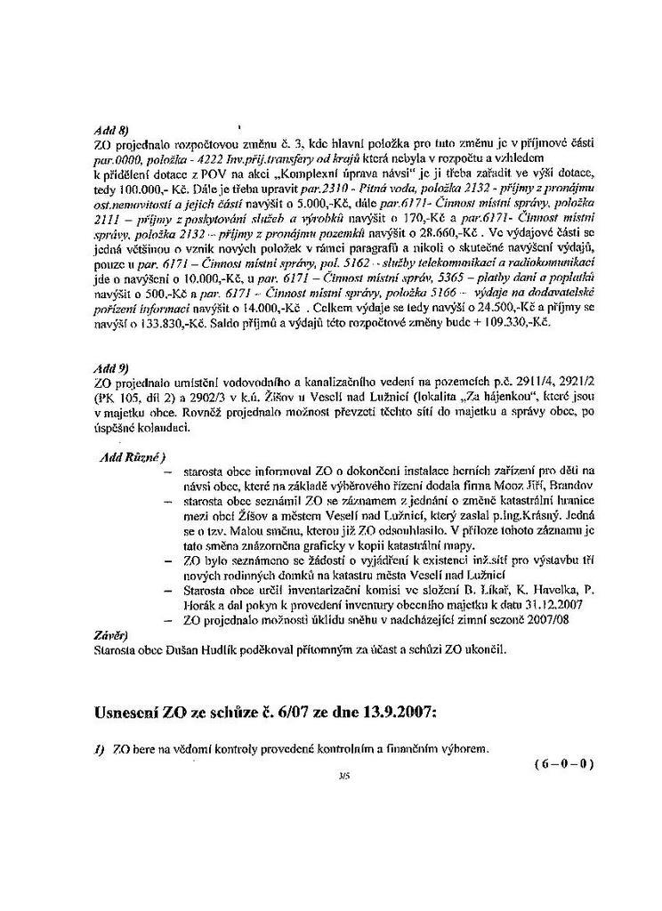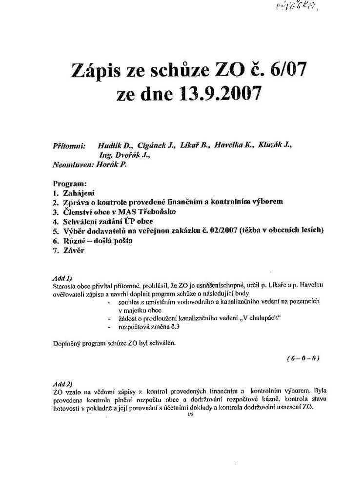 Zápis ze schůze 6/07 ze dne 13.9.2007