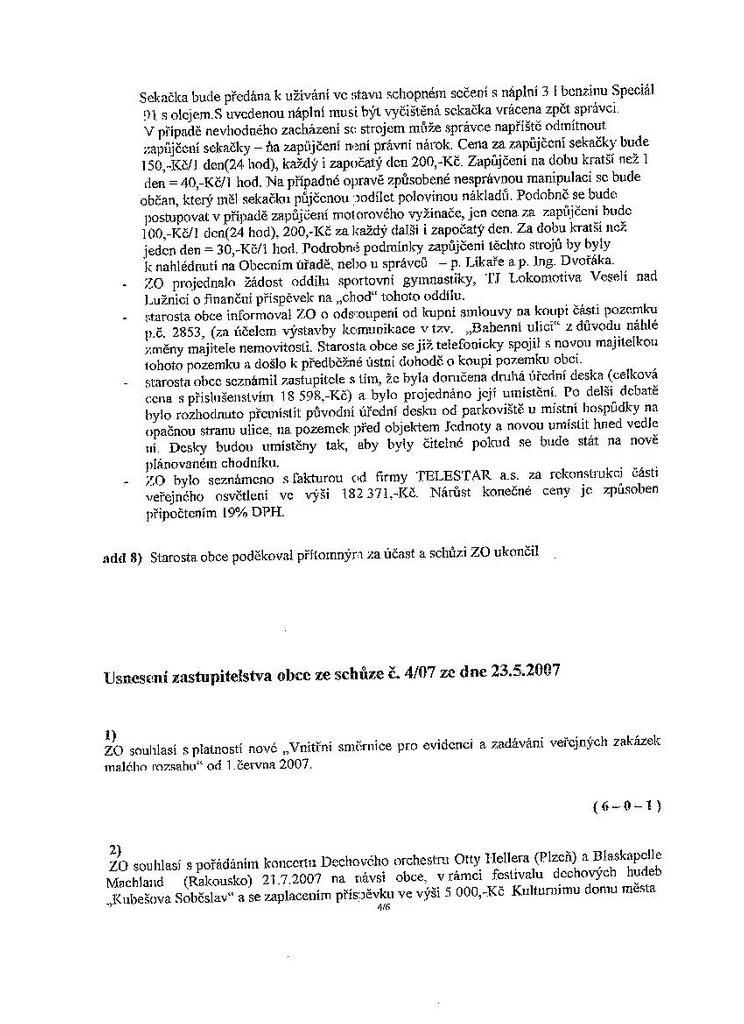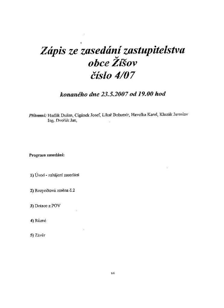 Zápis ze schůze 4/07 ze dne 23.5.2007