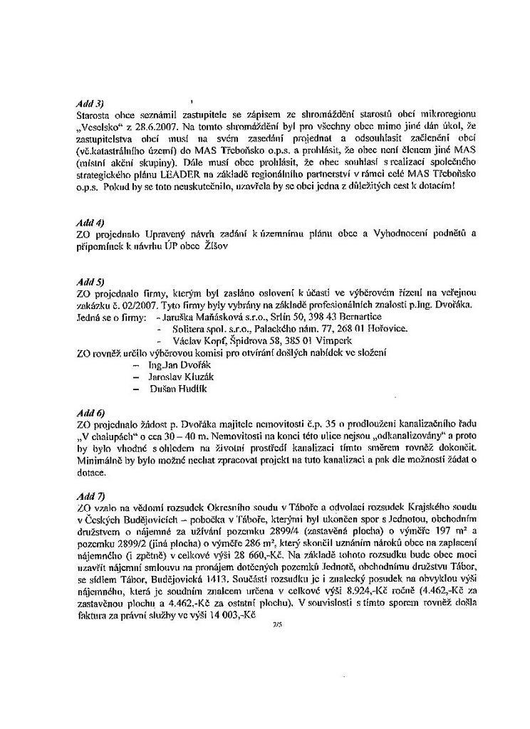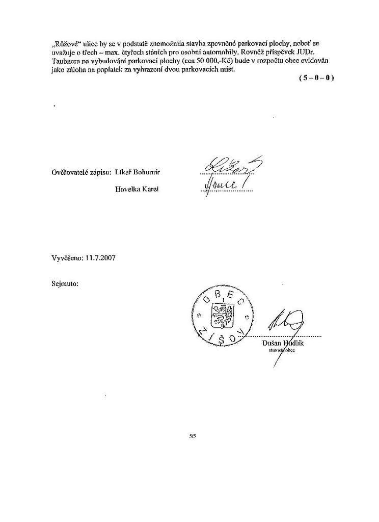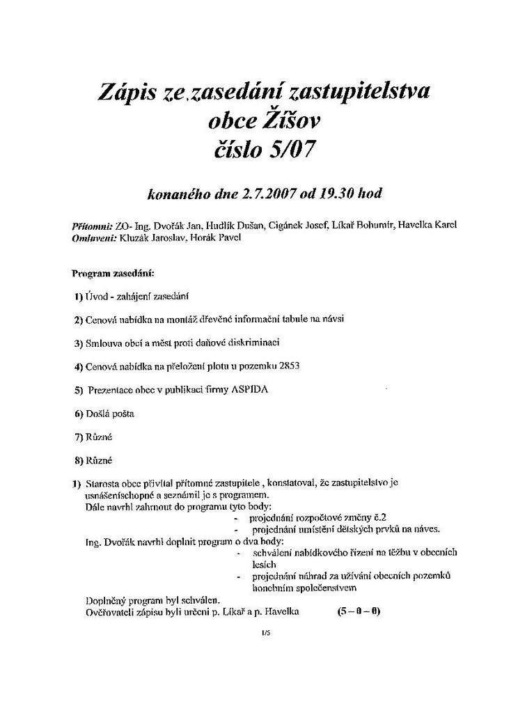 Zápis ze schůze 5/07 ze dne 2.7.2007