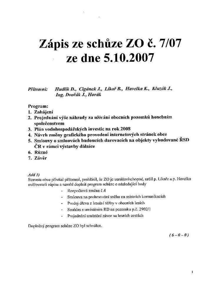 Zápis ze schůze 7/07 ze dne 5.10.2007