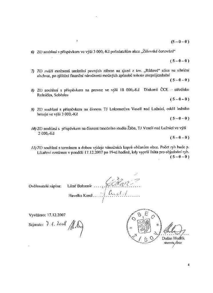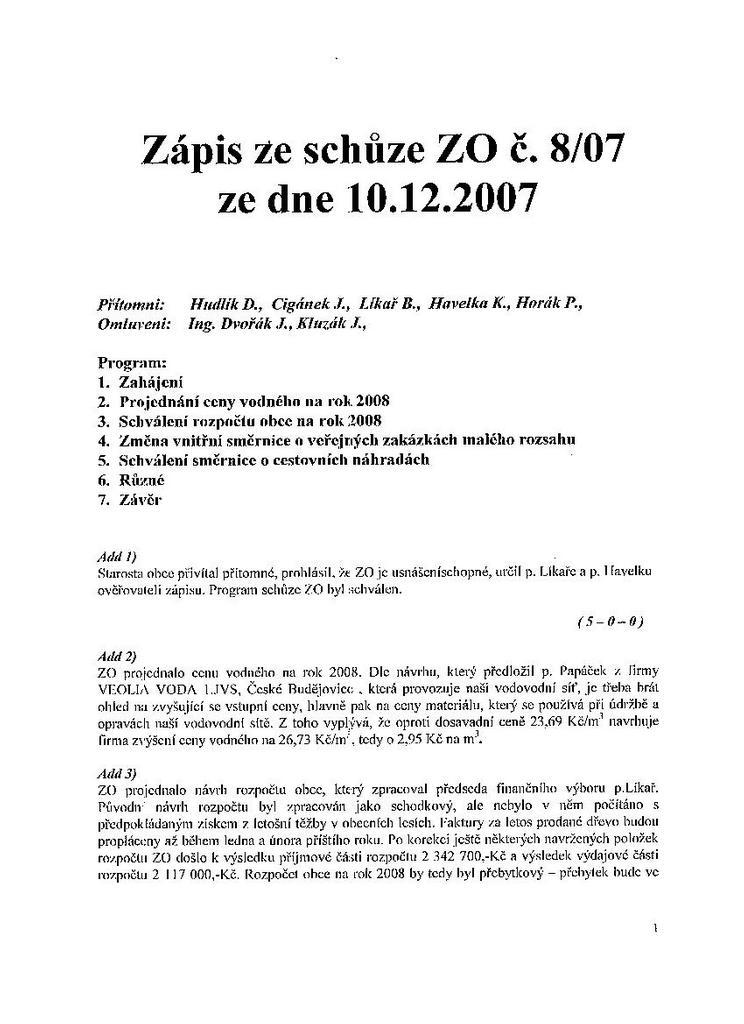 Zápis ze schůze 8/07 ze dne 10.12.2007