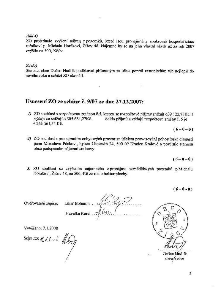 Zápis ze schůze 9/07 ze dne 27.12.2007